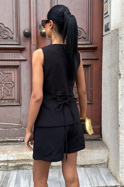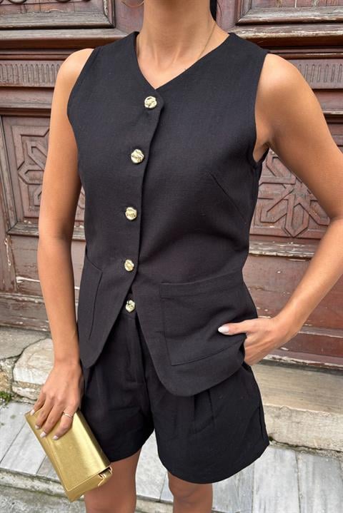 Gold Button Detailed Vest Shorts Cotton Set 10134-17
