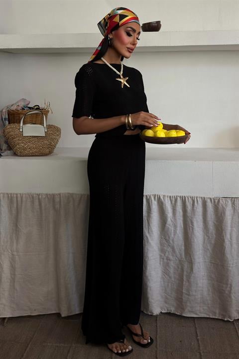 Knitted Blouse Trousers Two Piece Set 10084-025