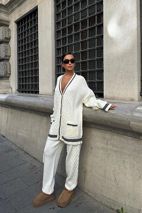 Lunadel Knitwear Cardigan Trousers Set 9974