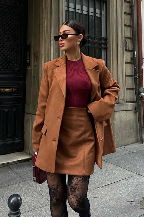 Mini Skirt Suede Suit 9935